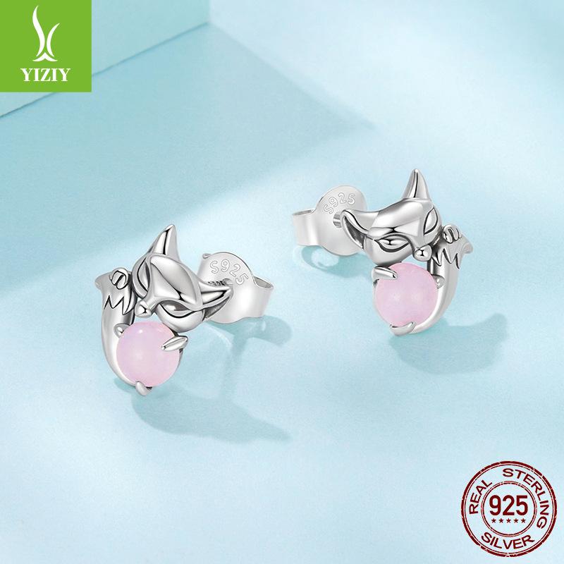 Серьги-пусеты из стерлингового серебра 925 пробы с розовой лисой, изысканные и маленькие серьги-пусеты с животными для женщин