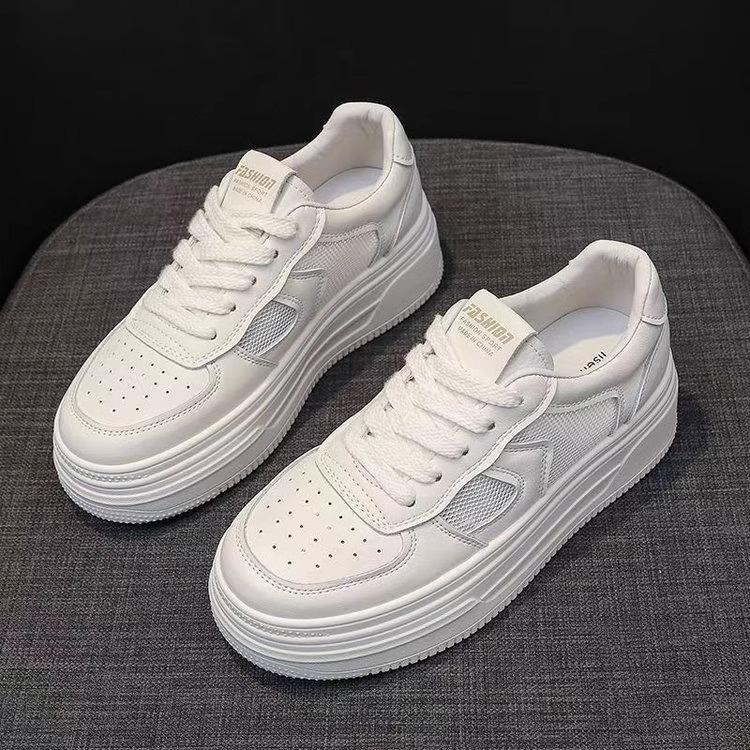 Маленькие белые туфли женские Life на толстой подошве универсальные весенне-осенние маффины 2025 летние сетчатые дышащие новые повседневные спортивные кеды