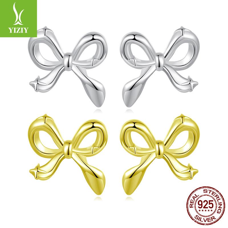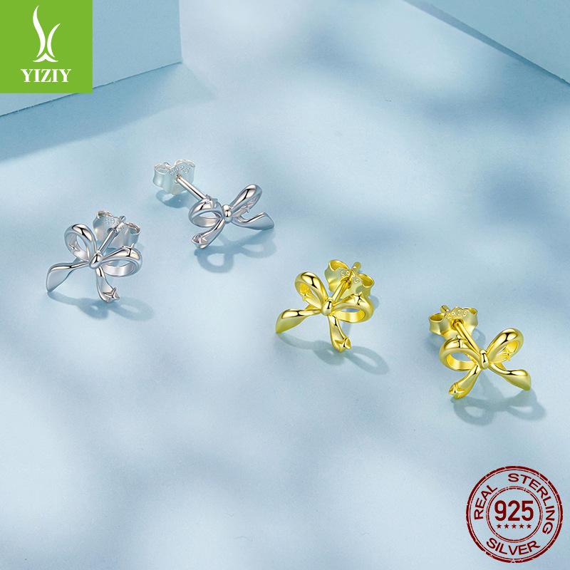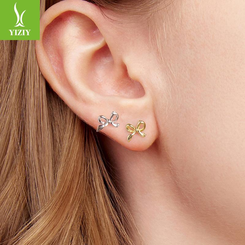 S925 Silver Stud Earrings With Versatile Ear Holes, Small Mini Starlight Bow Earrings