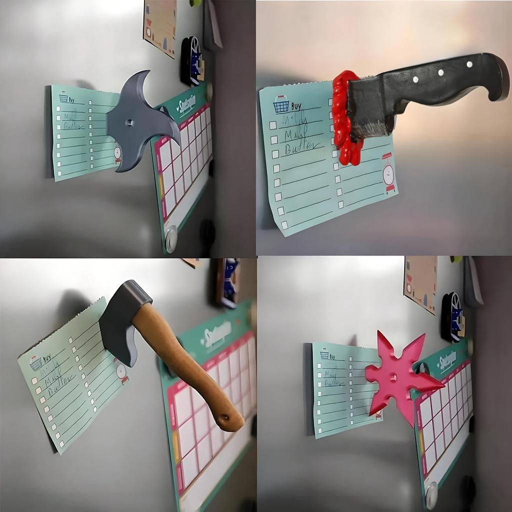 4 шт. Забавные магниты на холодильник в виде ножей, 3D топор, дизайн дротиков ниндзя, прочные смоляные шестиугольные декоративные магниты для холодильника, офиса, шкафов для хранения