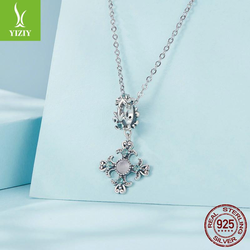 Винтажный кулон-крест с ирисами, классический дизайн, серебро 925 пробы, темпераментные аксессуары с бусинами