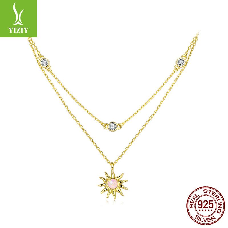 Покрытое золотом серебро S925, опаловое ожерелье-солнце, двухслойная цепочка на ключицу в стиле личного холодного ветра