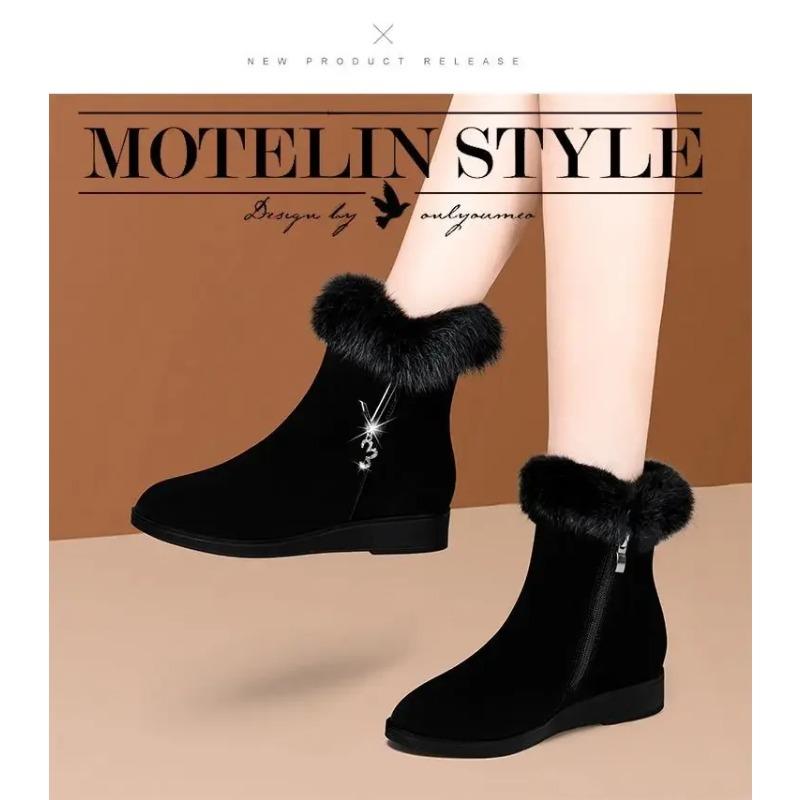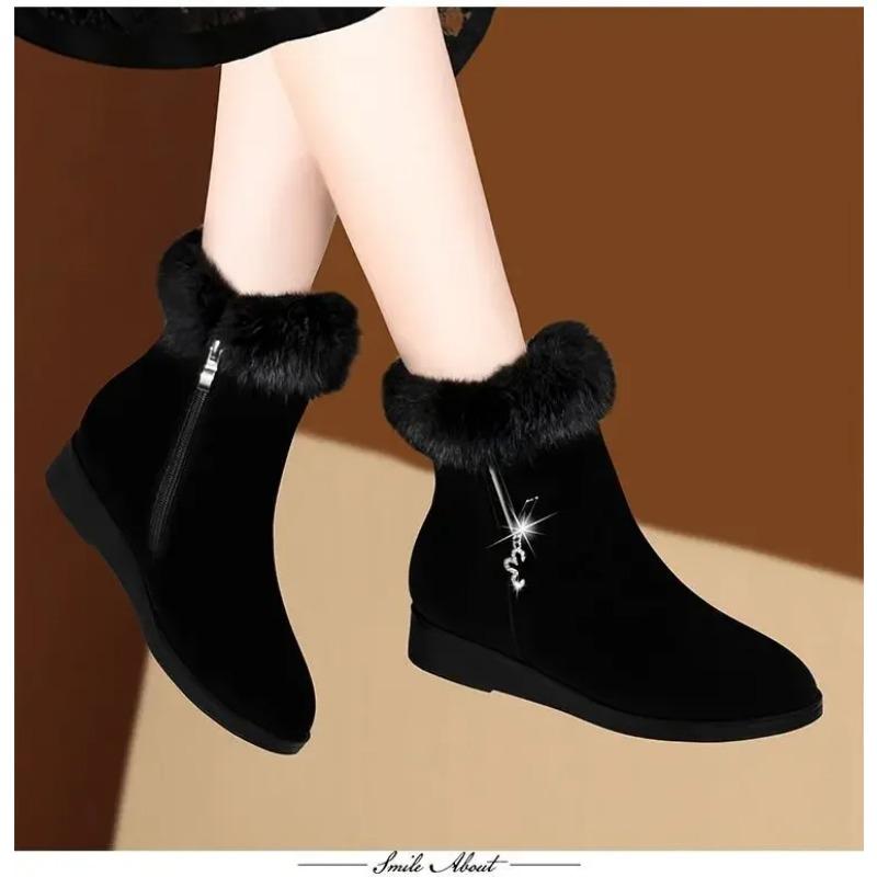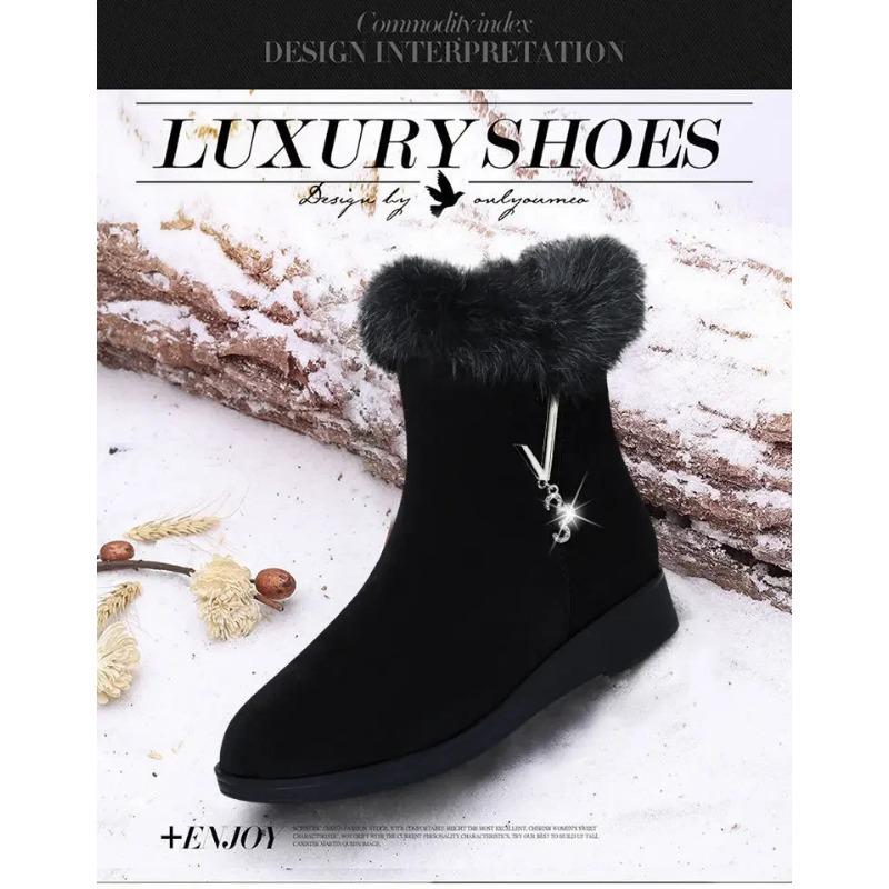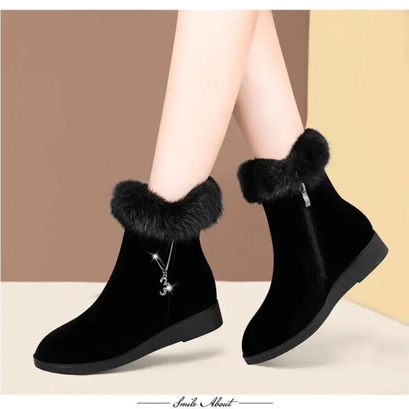 Плюшевые женские сапоги, удобные меховые туфли на высокой подошве, модная женская обувь, женская обувь на молнии, вулканизированная обувь, нескользящая женская обувь