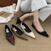 2025 new thick heel rivet nude high heels women's pointed head light mouth patent leather soft sole willow Ding Internet celebrity thick heel shoes