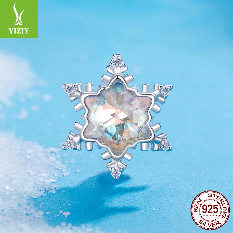 Бусины Ледяной Цветок S925 Стерлинговое Серебро Бусины Снежинки Сделай Сам Браслет Аксессуары с Бусинами Осень и Зима Легкая Роскошь Высокий Сенс