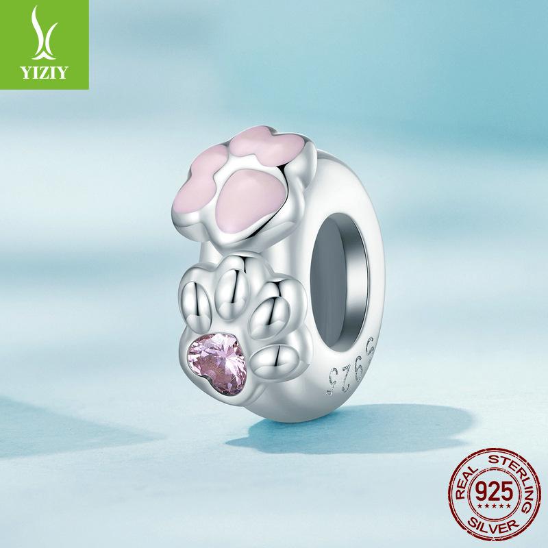Розовый девчачий браслет-коготь кошки, сделай сам, силиконовые позиционирующие бусины-спейсеры, милые бусины из стерлингового серебра S925.