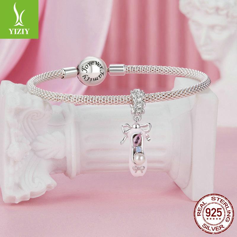 Розовые Милые Пуанты Сделай Сам Подвески Аксессуары, Мечта Принцессы Ветер Серебро 925 пробы Браслет с бусинами