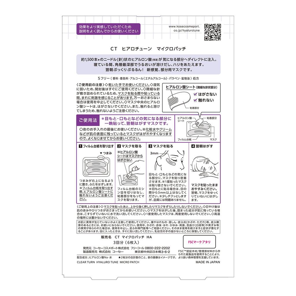 Clear Turn KOSE Гиалотун Микропатчи и Увлажняющие Патчи для Темных Кругов (3-кратное снабжение) (Область вокруг глаз) (Бонус включен)