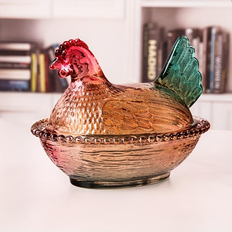 1 шт. Роскошная хрустальная стеклянная конфетница в форме курицы, Элегантный настольный декор для офиса, дома, кухни, Идеально подходит для сладостей, закусок и печенья