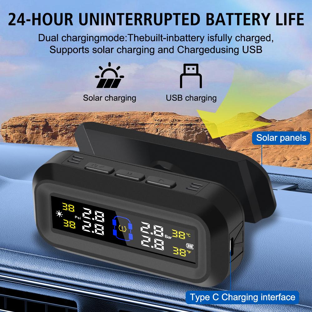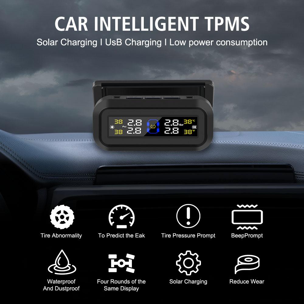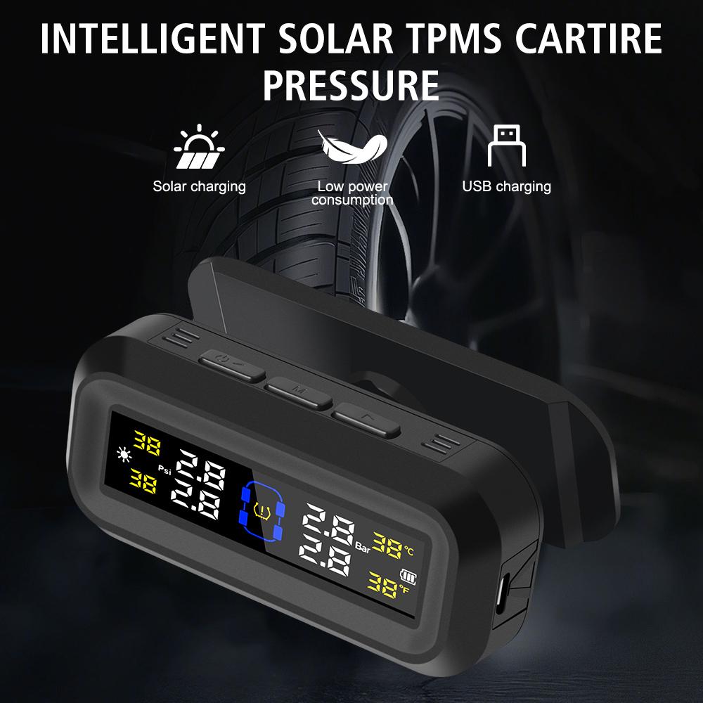 Автомобильная TPMS с питанием от солнечной батареи и USB, цифровая ЖК-панель, система контроля давления в шинах, монитор температуры шин, автосигнализация