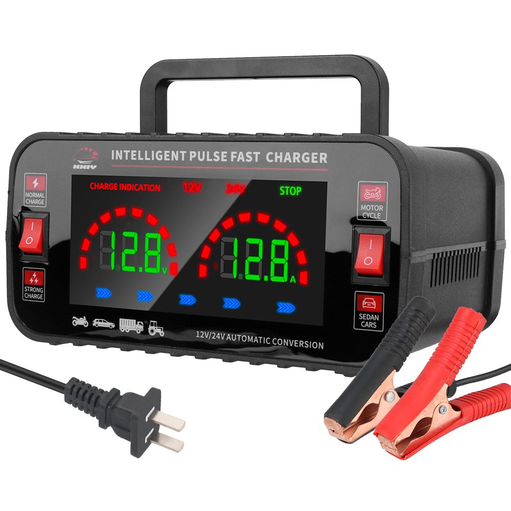 Импульсное восстановление Вилка ЕС Полностью автоматическое зарядное устройство для автомобильного аккумулятора Высокая мощность Для свинцово-кислотных AGM GEL аккумуляторов 12В/10А 24В/5А 150Вт