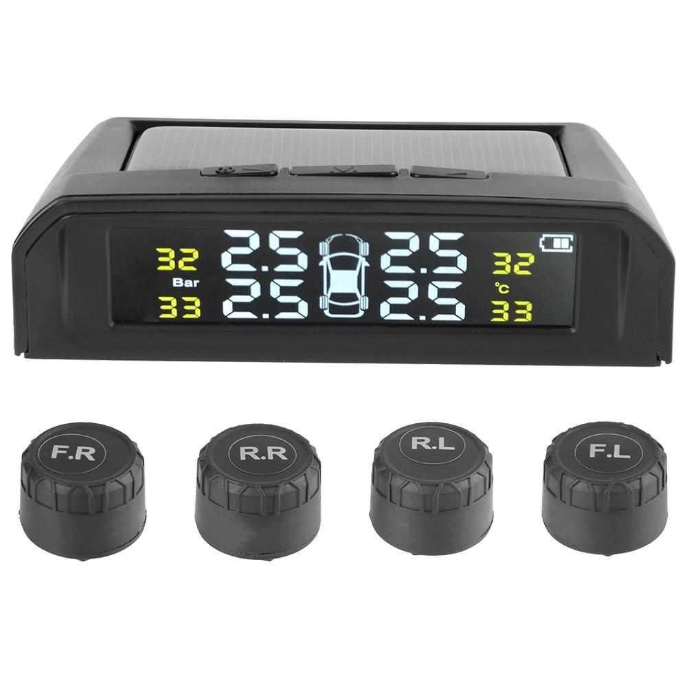 Беспроводная система контроля давления в шинах USB на солнечной батарее + 4 внешних датчика Автомобильная TPMS ЖК-дисплей Интеллектуальное предупреждение о температуре