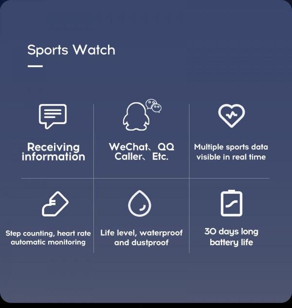 6. Напоминание о вызове и информационный толка: Подключите приложение ''Fitpro'', дисплейный звонок, SMS и SNS (Твиттер, Линия, WhatsApp, Facebook, Линия, KaKaoTalk, WeChat, QQ) и другие уведомления; никогда не пропустите важную информацию.