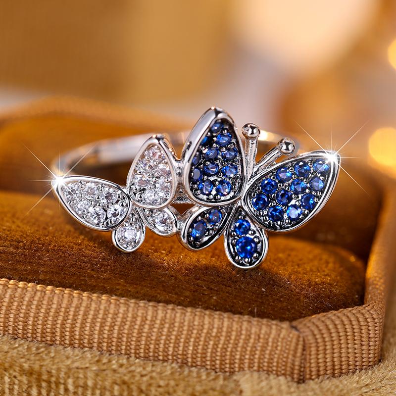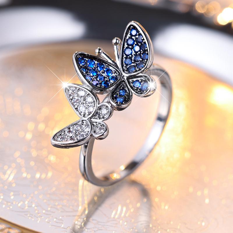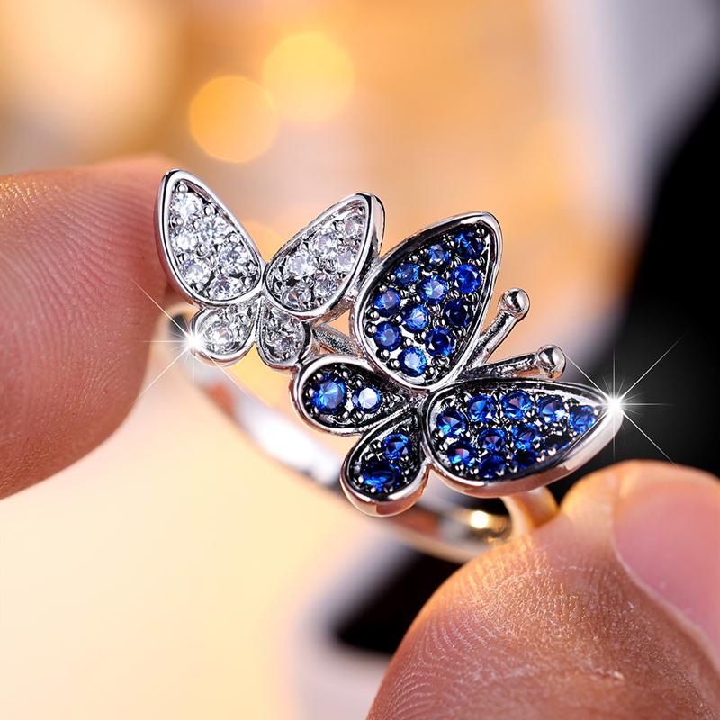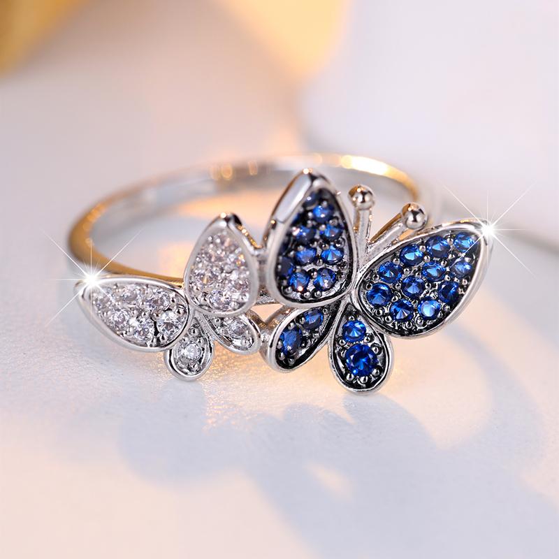 Серебряное кольцо с двумя бабочками, белое, синее, цирконовое, обручальное кольцо для женщин, ювелирное изделие, подарок