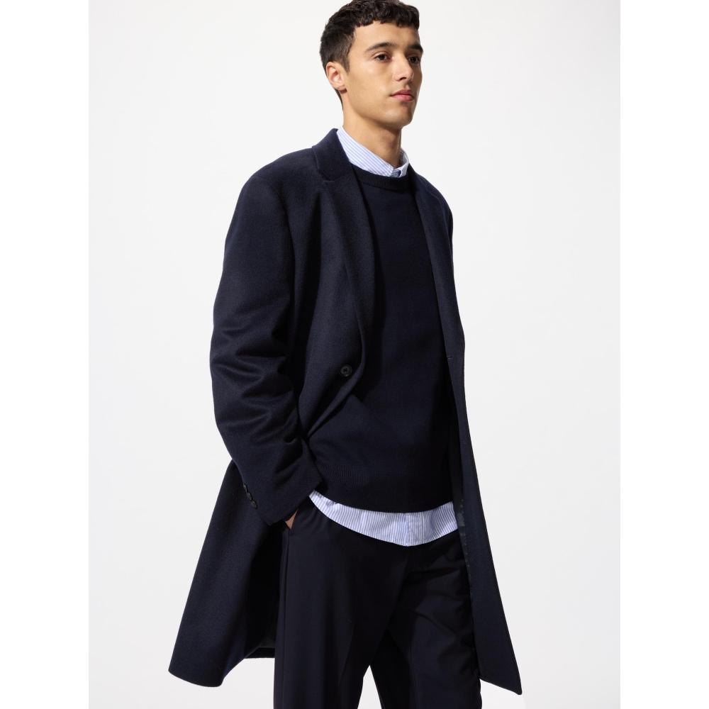Пальто Честерфилд из шерсти и кашемира UNIQLO Japan подходит как для делового, так и для элегантного повседневного стиля.. Изготовлено из роскошной смеси шерсти и кашемира, обеспечивает тепло и придает элегантный вид.