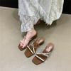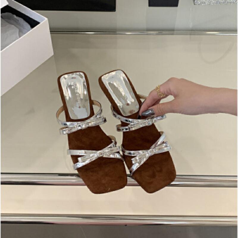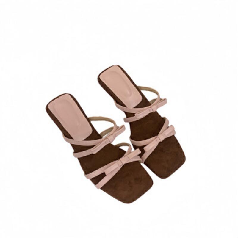 Осень новый милый бант квадратный носок танкетка высокий каблук шлепанцы на выход крутые тапочки