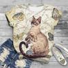 Summer Round Neck 3D Animal Cat Dog Print Top Fashionable Casual Short Sleeved Women's T-shirts