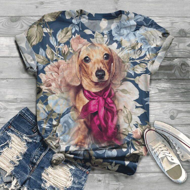 Summer Round Neck 3D Animal Cat Dog Print Top Fashionable Casual Short Sleeved Women's T-shirts — купить товар онлайн с бесплатной доставкой по всему миру!