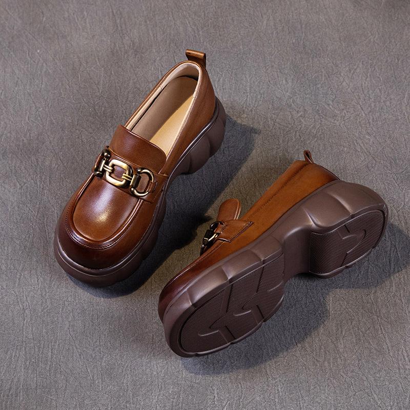 Первый слой лоферов из коровьей кожи для женской коллекции весна 2025, новая кожа, ретро британский стиль, толстая подошва, туфли-маффины на одной педали для женщин
