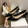 Внутренние заклепки, туфли Мэри Джейн с неглубоким вырезом, нюдовый острый носок, весенне-летняя мягкая лакированная кожа, французский темперамент, модные женские