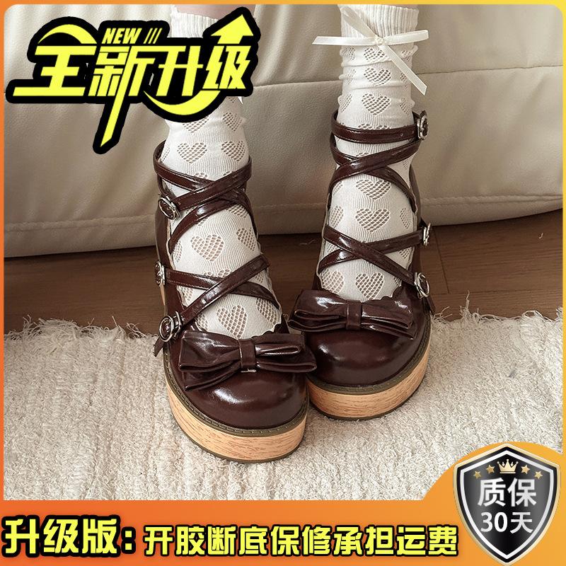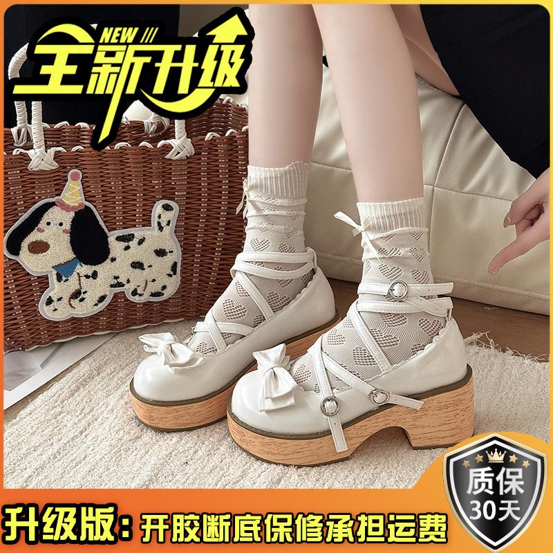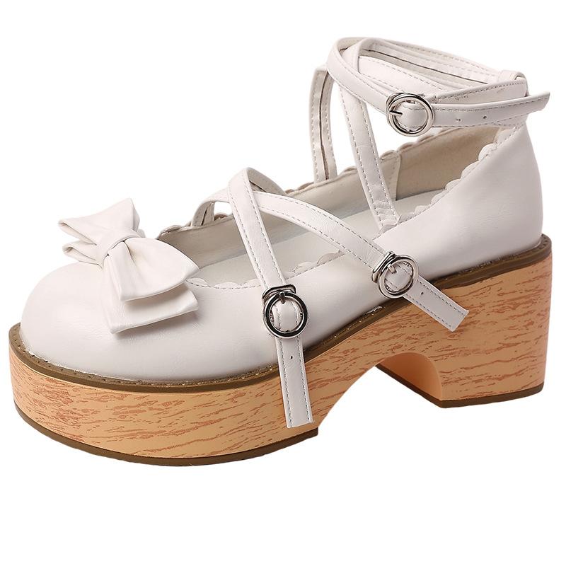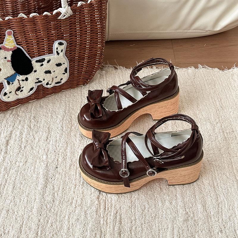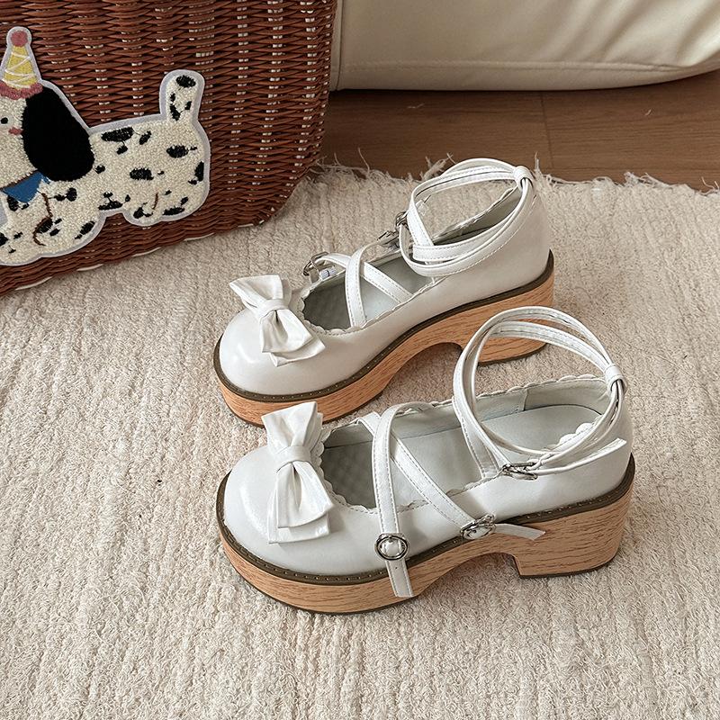 Милые туфли Мэри Джейн с бантом, женские, осенний дизайн, толстый каблук, с юбкой, перекрестный ремешок, высокий каблук, одинарные туфли, тренд