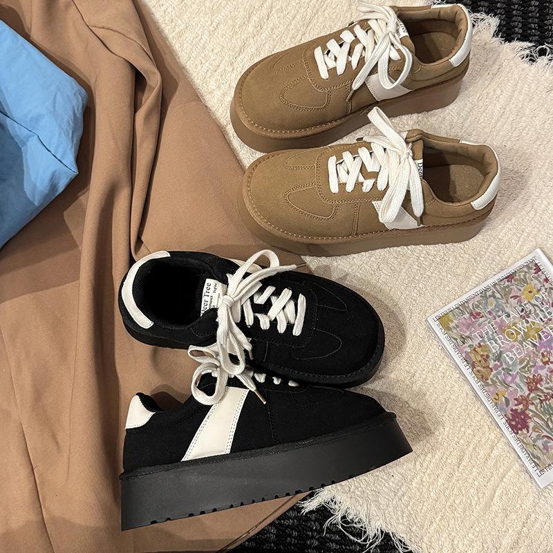 Ретро матовая кожа толстая подошва сочетание цветов шнуровка немецкие тренировочные туфли женские 2025 осень и зима новая модная спортивная обувь хлопок одинарный с