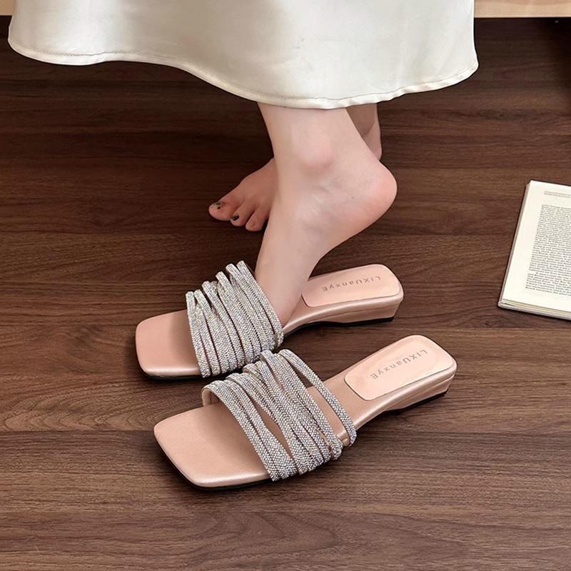 Премиальные туфли-драг на плоской подошве из одного слова, летняя французская красивая верхняя одежда с юбкой, повседневные пляжные женские босоножки на танкетке