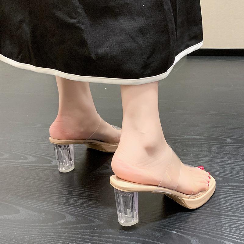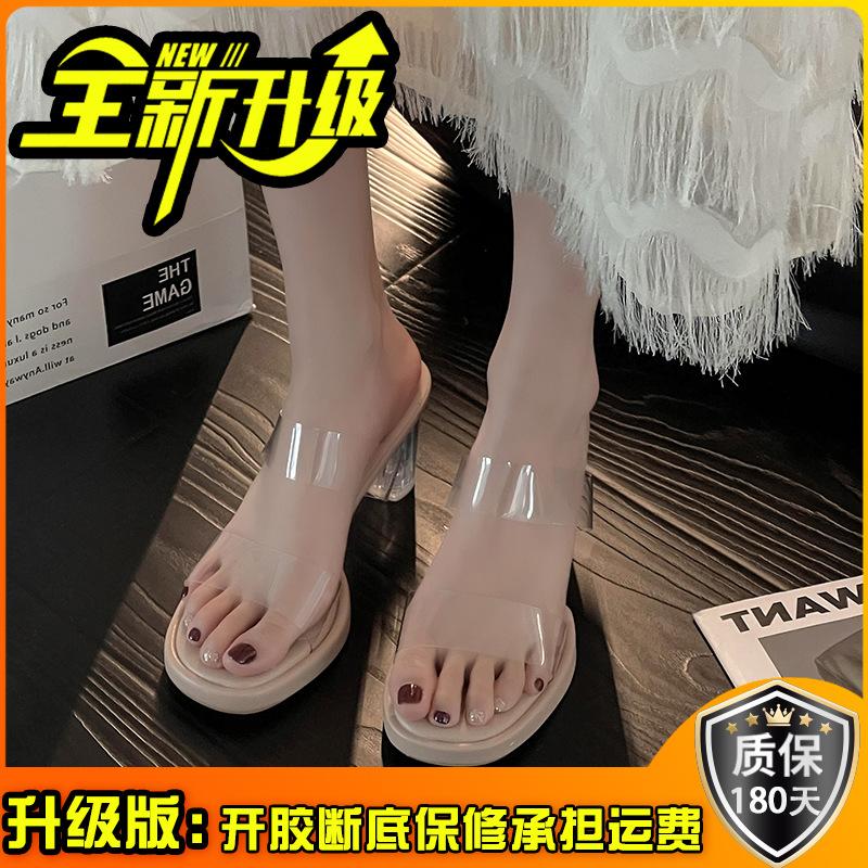 Хрустальные тапочки лето 42 большой размер женская обувь фея французские прозрачные высокие каблуки толстый каблук сандалии сандалии хрустальная женская обувь