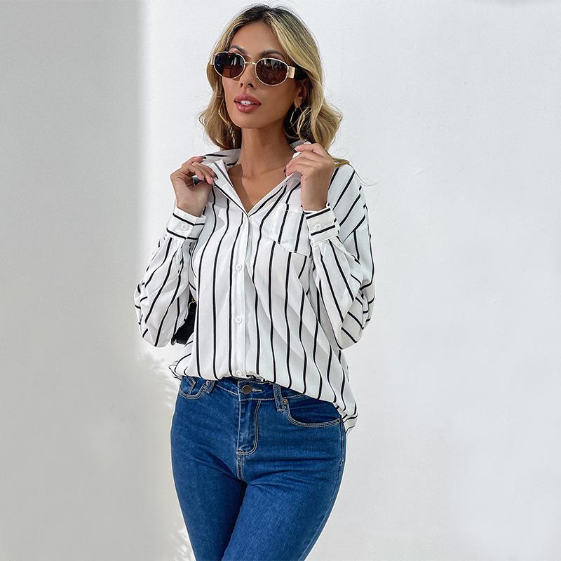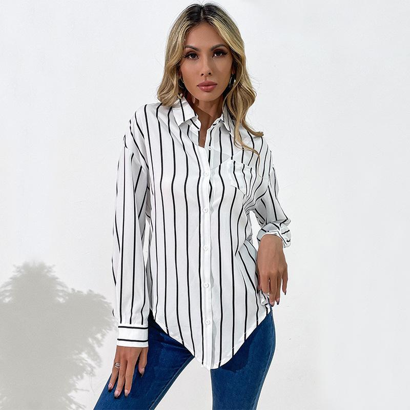 Женские модные повседневные свободные блузки и рубашки-поло с длинным рукавом и принтом в полоску