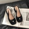 Красивые туфли на высоком каблуке, как у интернет-знаменитостей, лето 2025, новые женские туфли-лодочки с острым носом, металлической пряжкой, черные сандалии с закрытым носком