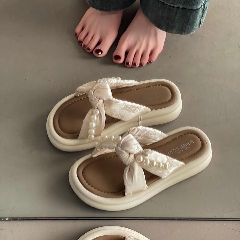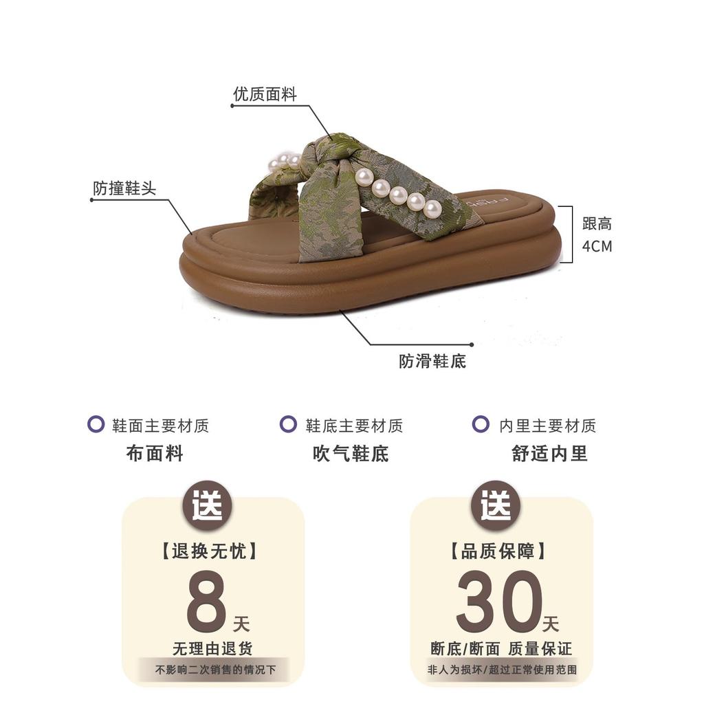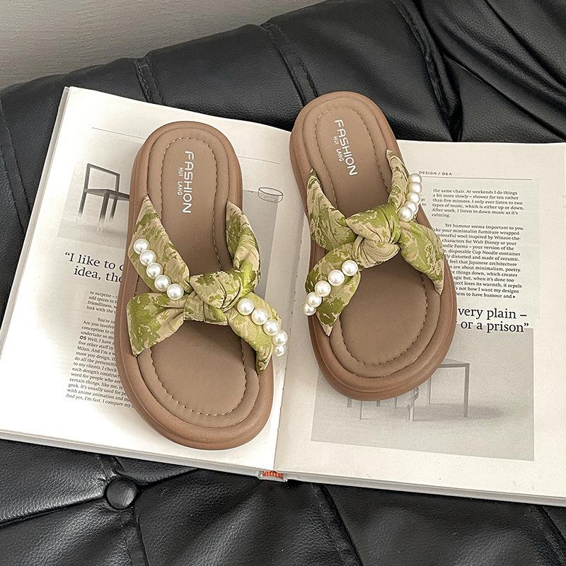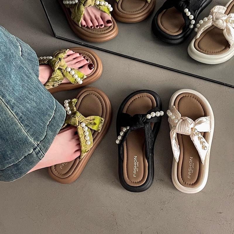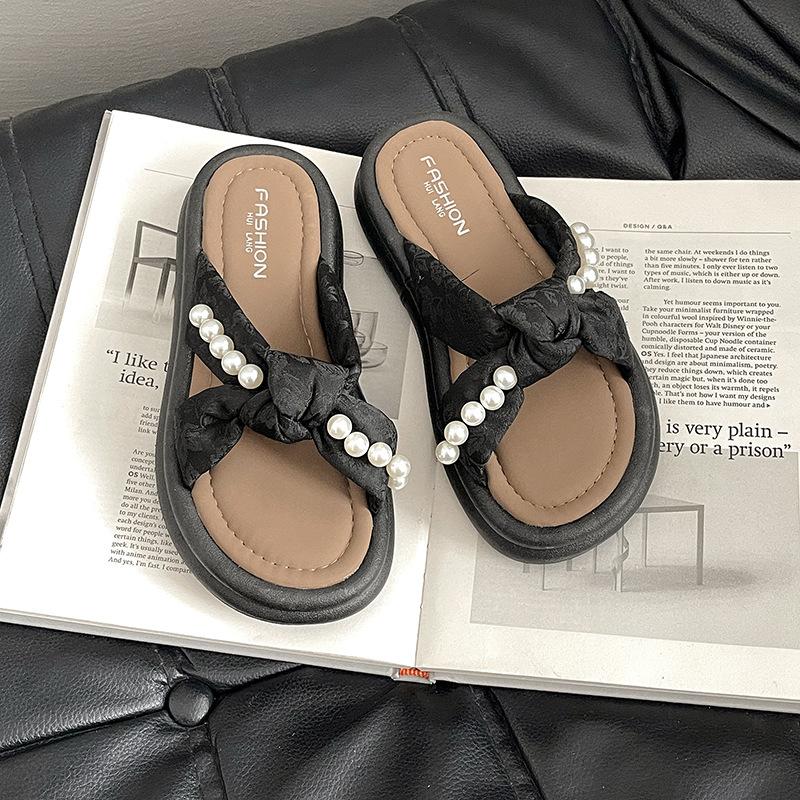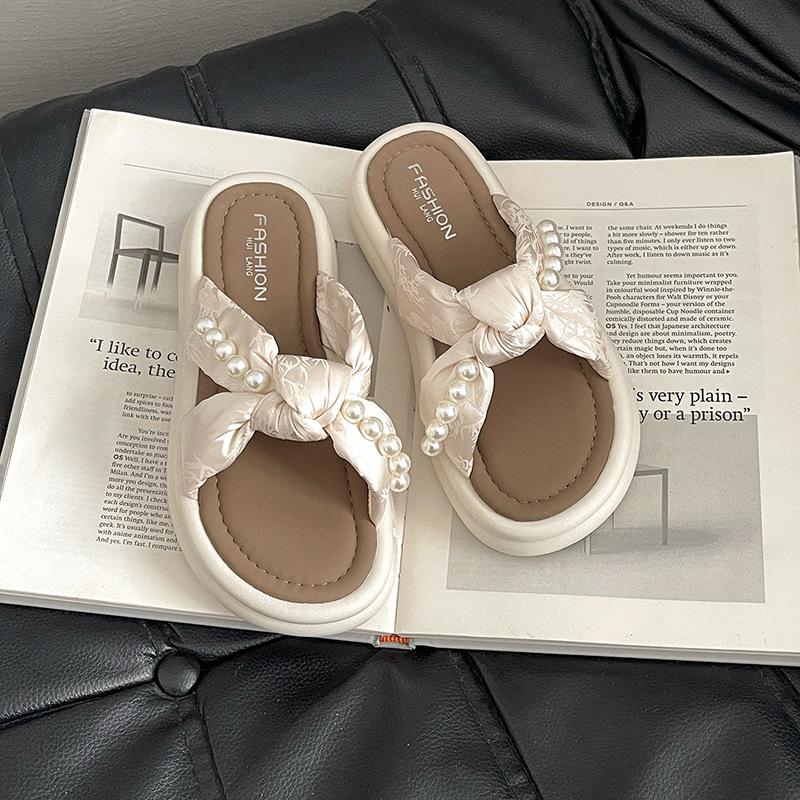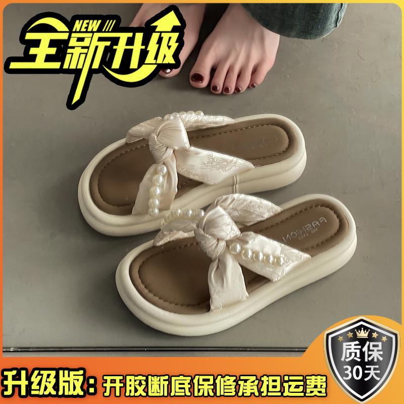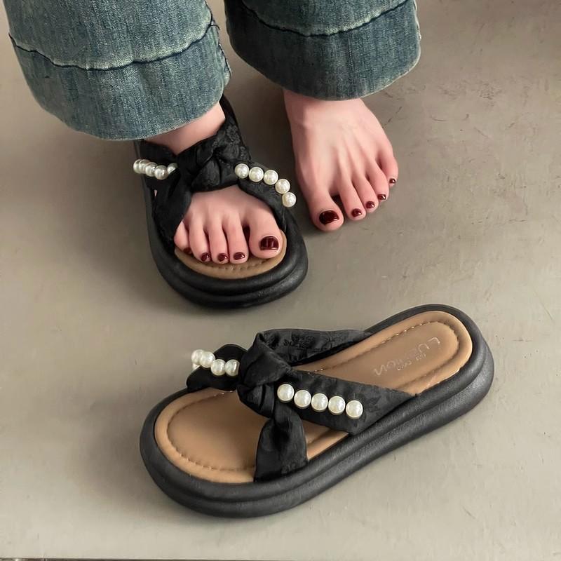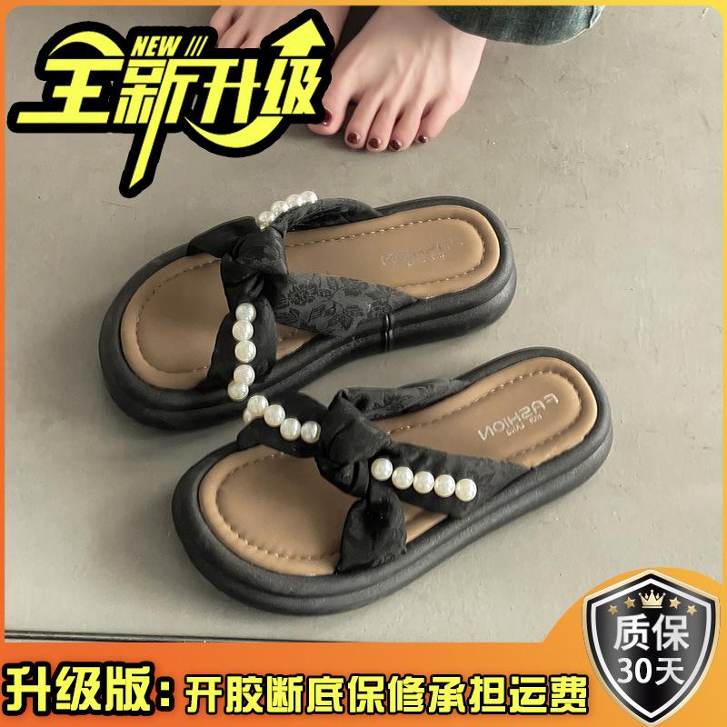 Лето 2025 новая мода повседневная дерьмовое ощущение верхняя одежда жемчужный пляж женские крутые тапочки маффин однословные шлепанцы фея
