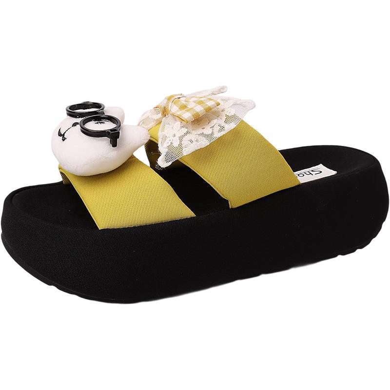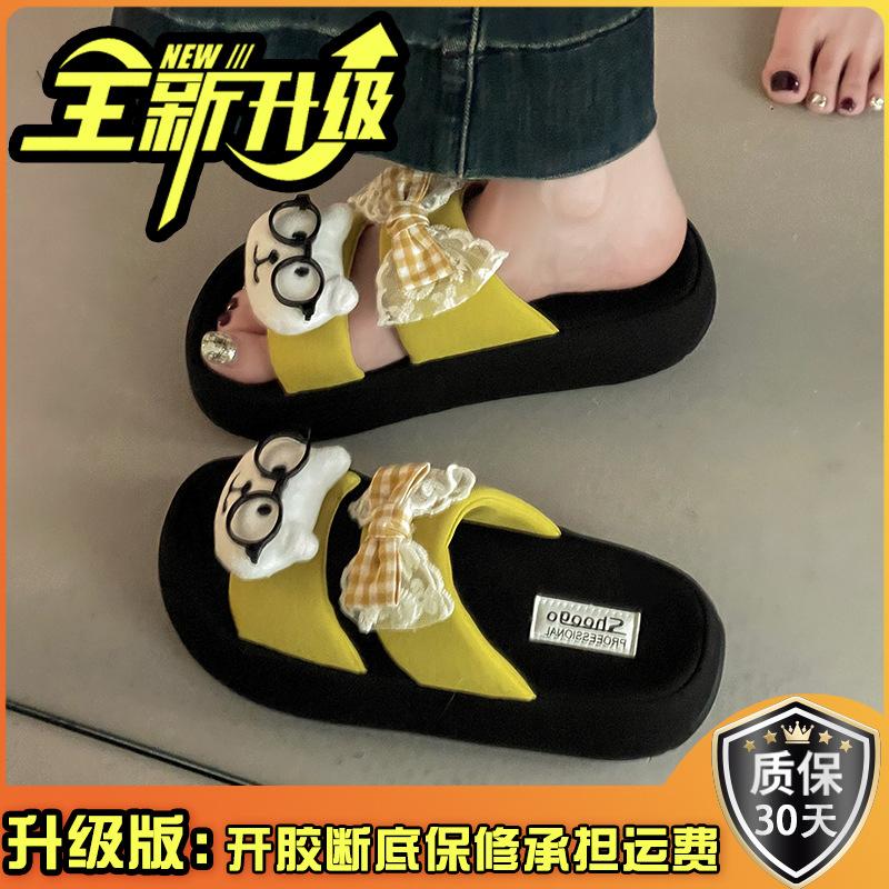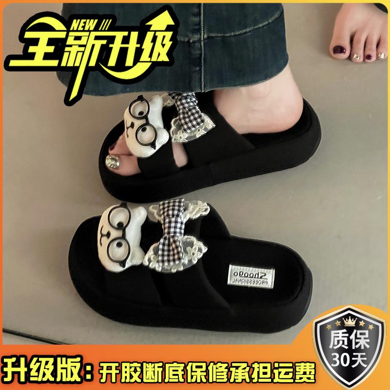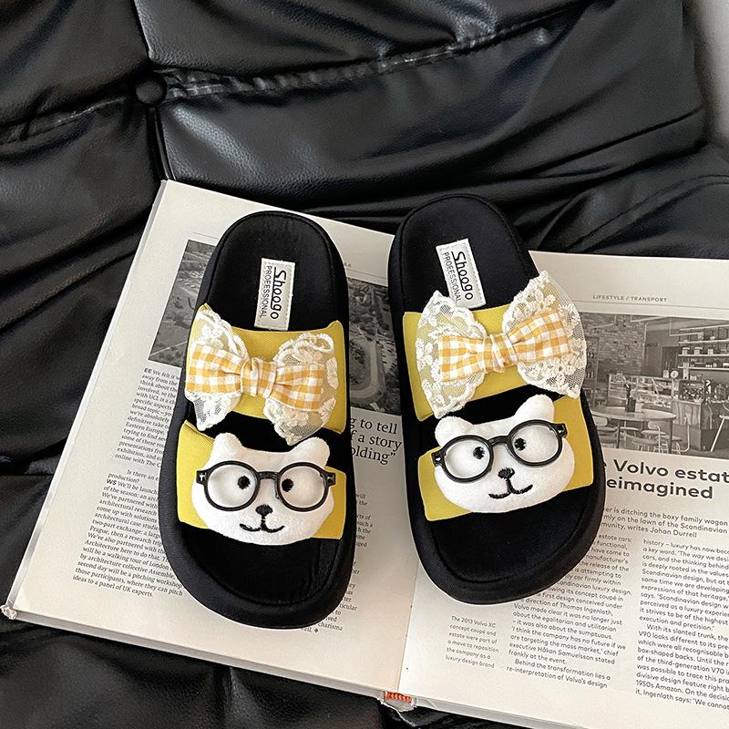 Модные универсальные милые кошачьи кошачьи толстоподошвенные шлепанцы на один палец женские летние с бантом для девочки носить на плоской подошве крутые шлепанцы