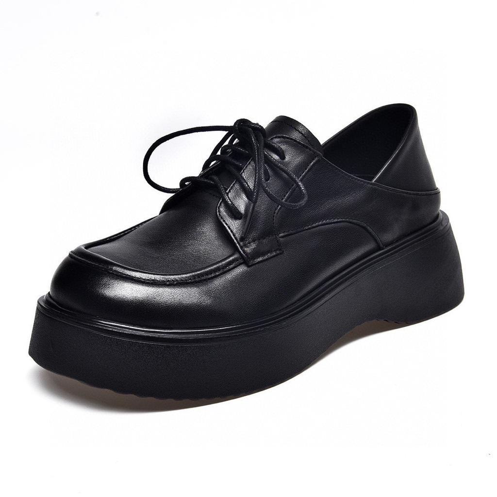 Женская обувь 2025 весна новая одинарная обувь на толстой подошве на платформе из первого слоя коровьей кожи на шнуровке два способа носки на плоской подошве с круглым носком повседневная обувь