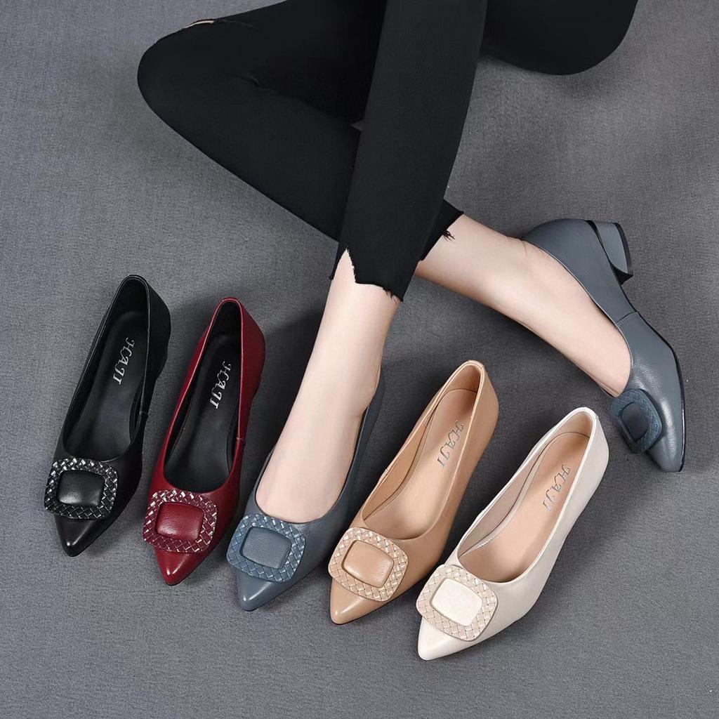 Осень 2025 года, новая мода, остроносые туфли с квадратной пряжкой, темперамент, низкий каблук, туфли-лодочки из коровьей кожи, первый слой, плоская рабочая обувь