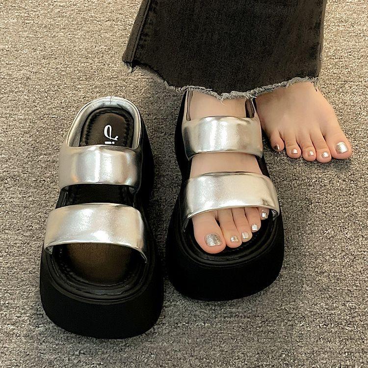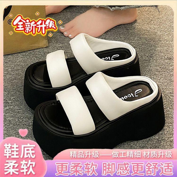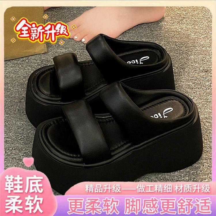Тапочки на платформе женская летняя мода 2025 новые босоножки увеличивающие рост повседневные универсальные кексы одно слово пляжная обувь