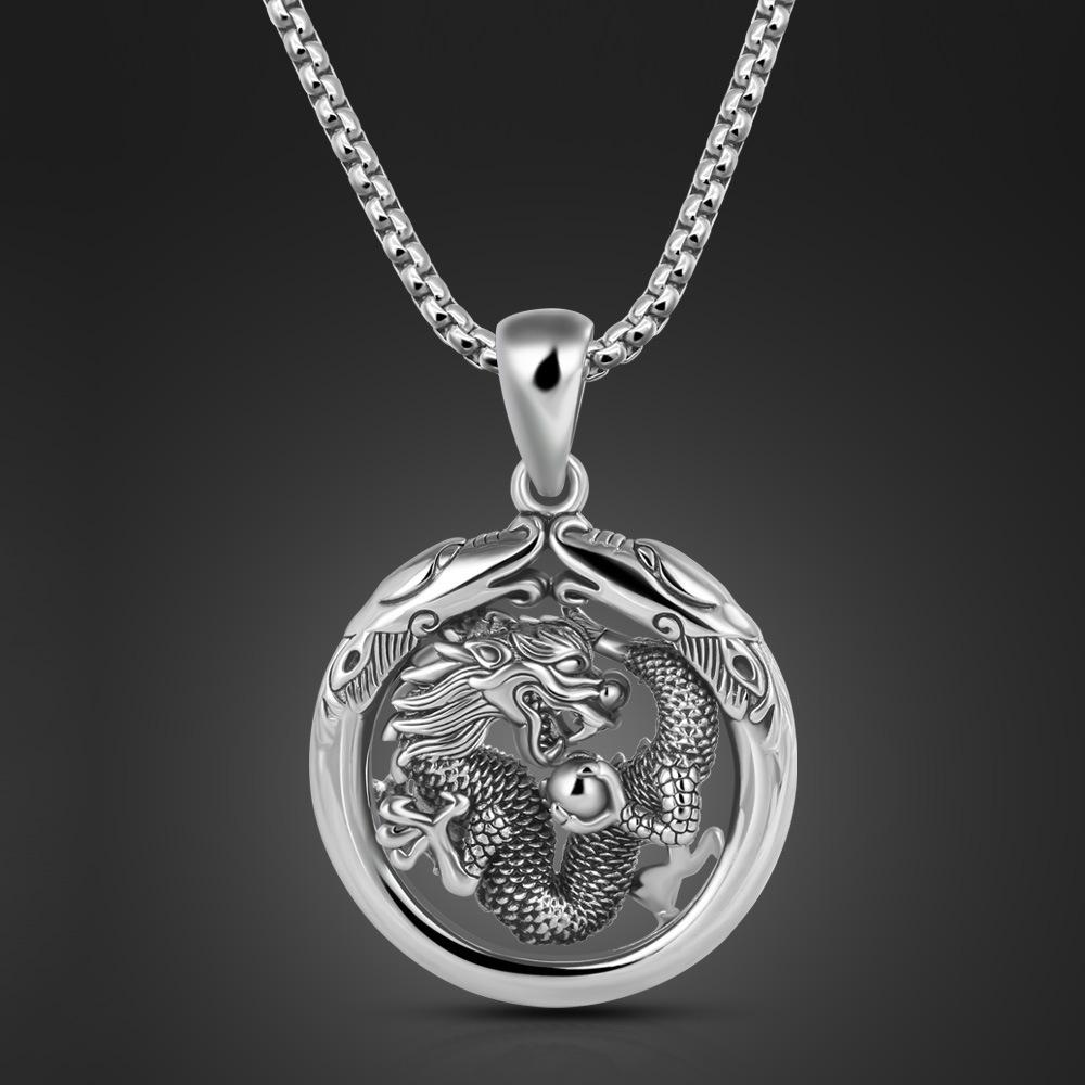 Винтажная мужская подвеска-кольцо с драконом, модная мужская медная гальванизированная толстая родиевая имитация тайского серебра, ювелирные изделия