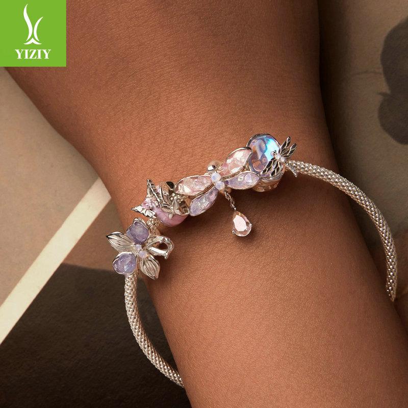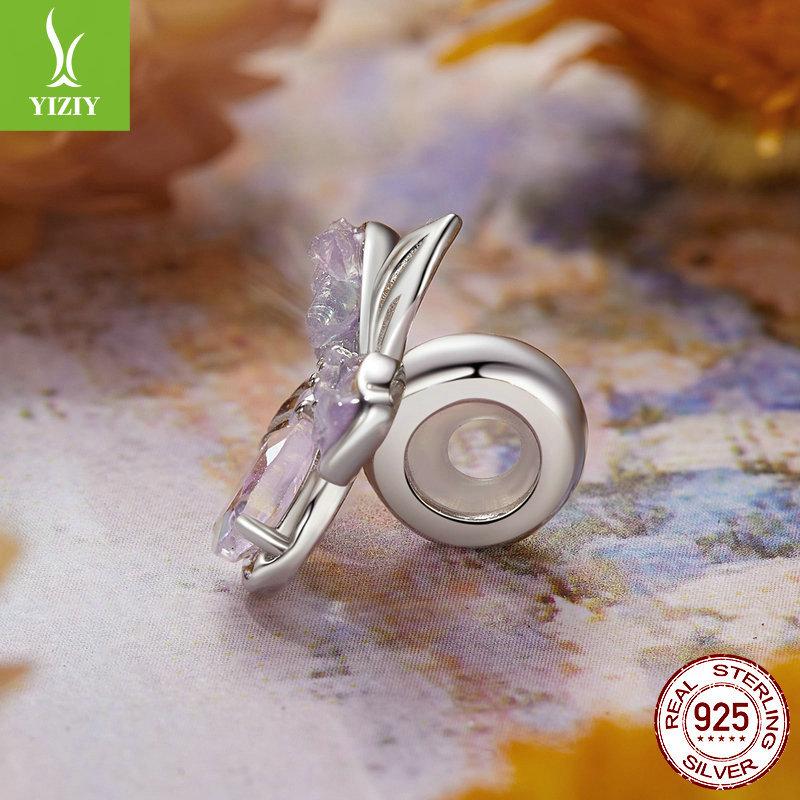 Фиолетовый Цветок DIY Силиконовые Позиционирующие Браслетные Бусины, Милые Девичьи Бусины из Стерлингового Серебра S925