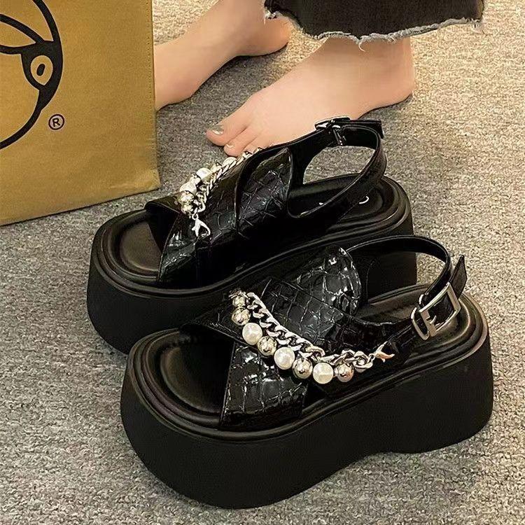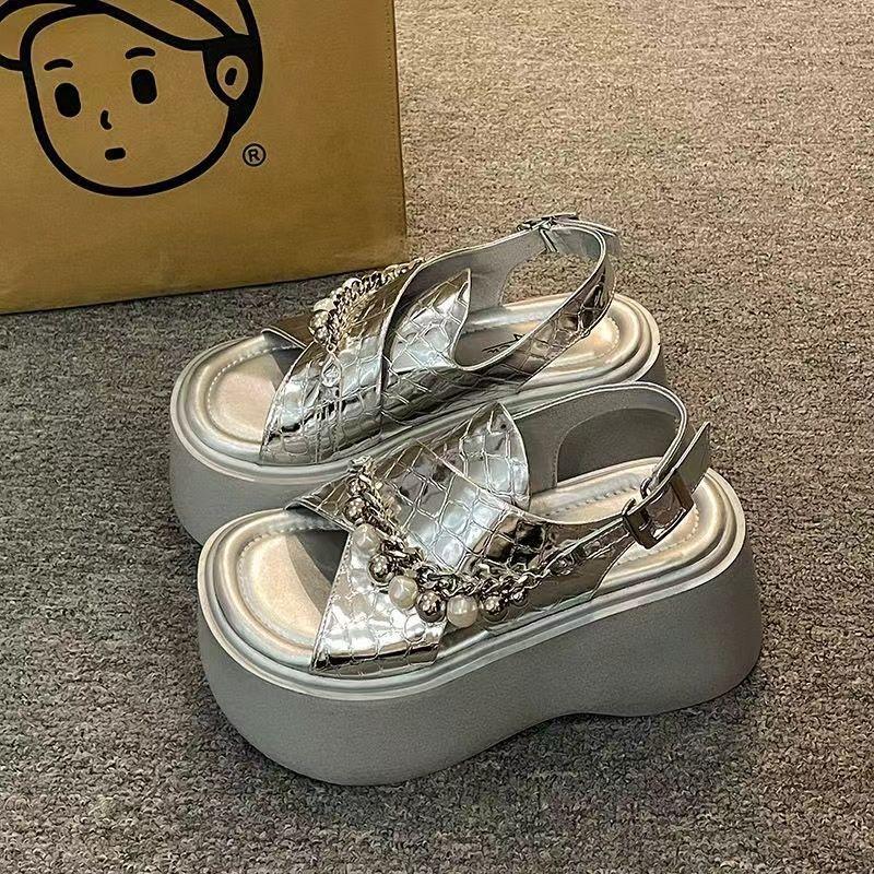 Женские сандалии на платформе с увеличением роста, 2025, новая летняя обувь, высококлассные серебристые европейские сандалии-маффины для пляжа