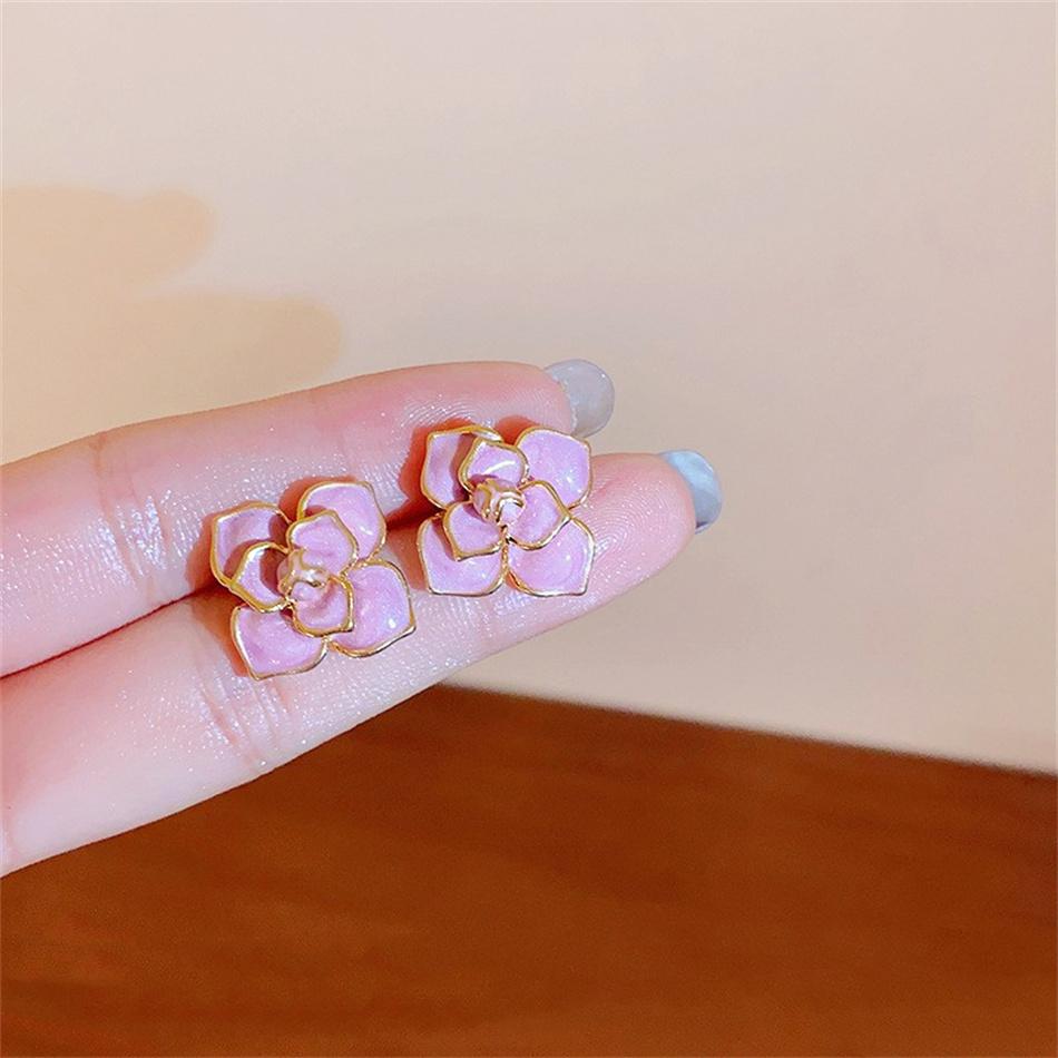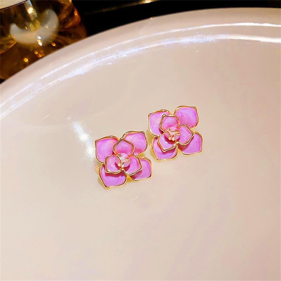 Глазурь Фиолетовый Цвет Цветок Пусеты Серьги для Женщин Французский Ретро Элегантный Корейский Милый Свадебная Вечеринка Ювелирные Изделия Подарок