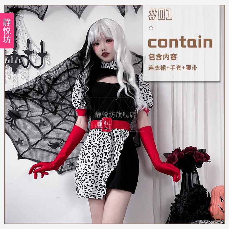 Хэллоуин Взрослый Костюм Фильм 101 Костюм Верного Пса Черно-Белое Платье Ведьмы Куилы