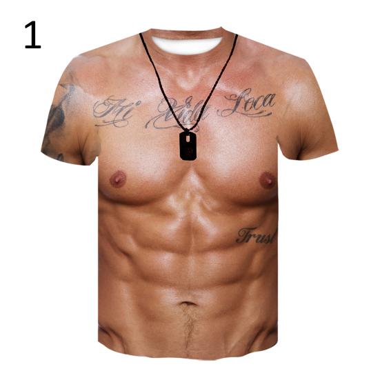 Мужская мода лето футболка с круглым вырезом и коротким рукавом 3D принт мышц уличная одежда топ