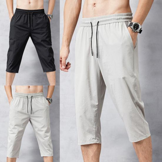 Однотонные бриджи Эластичная талия Мужские На кулиске Длина 3/4 Укороченные брюки Спортивные штаны — купить товар онлайн с бесплатной доставкой по всему миру!