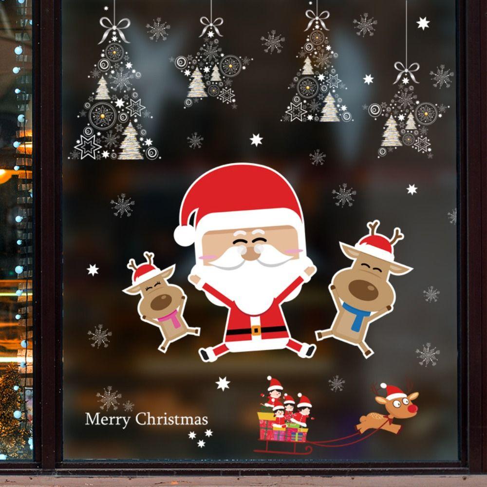 PVC Christmas Window Glass Stickers DIY Snowflake Wall Stickers Creative Santa Claus Decal Window