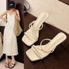Французский премиум! Бежевые босоножки с одним словом, женские весенне-летние, с квадратным носком, на высоком каблуке-шпильке