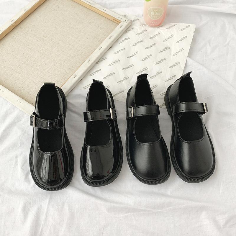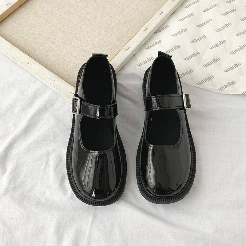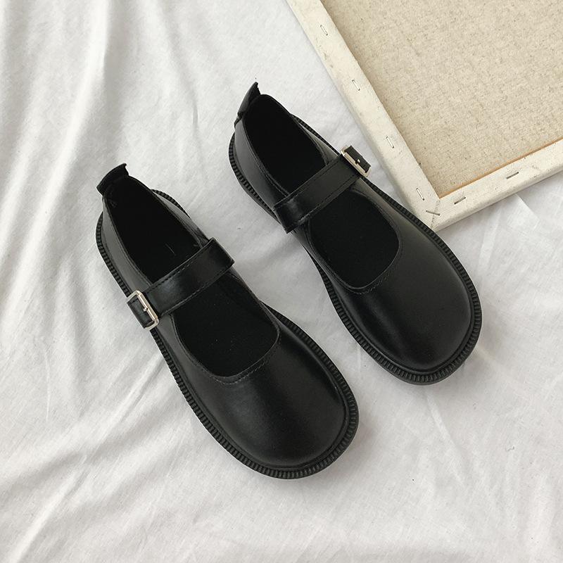 Туфли Мэри Джейн женские осень 2025 новые круглые туфли с неглубоким носком одно слово с маленькими кожаными туфлями универсальные толстые каблуки черные одинарные туфли