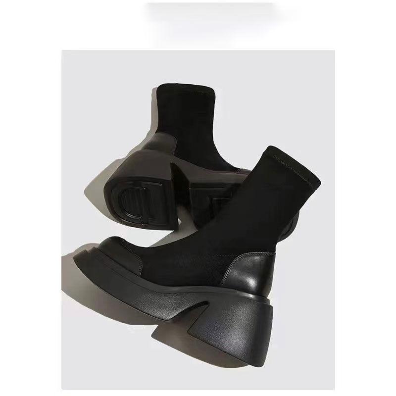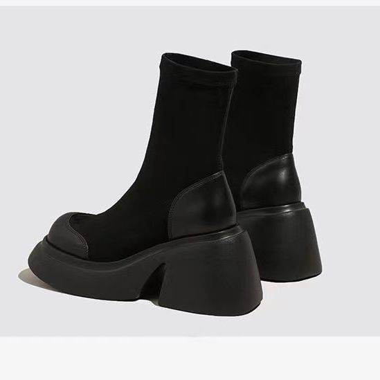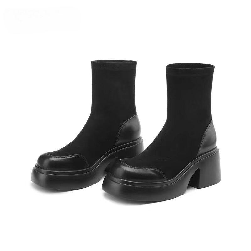 2025 новый осенне-зимний популярный на высоком толстом каблуке эластичные однотонные ботинки Мартина женские на толстой подошве короткие ботинки маленькие тонкие ботинки