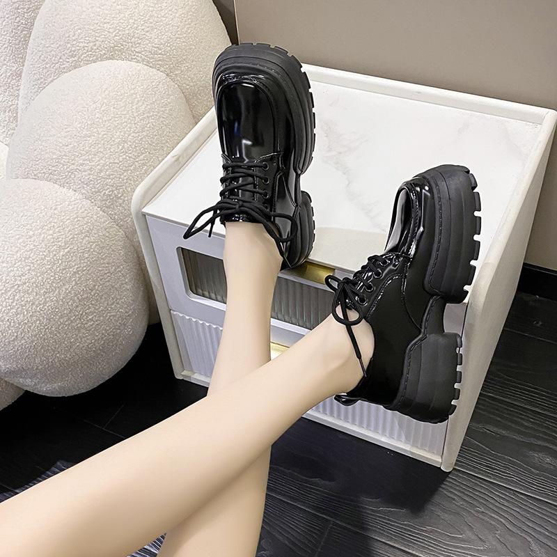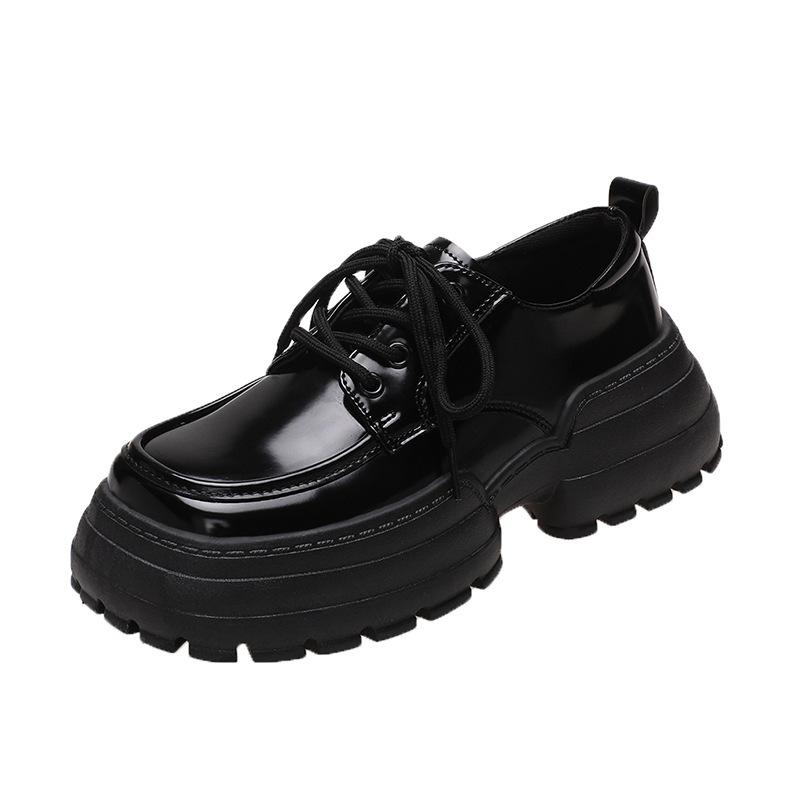 Одиночные туфли женские осень-зима 2025 новые британские ретро черные кожаные туфли маленькие туфли на платформе увеличивающие высоту маленькие мокасины