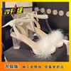 Французские популярные туфли с открытым носком на высоком каблуке, женские, 2025 осень, новинка, нишевые, с жемчугом, модные, сандалии на хрустальном каблуке