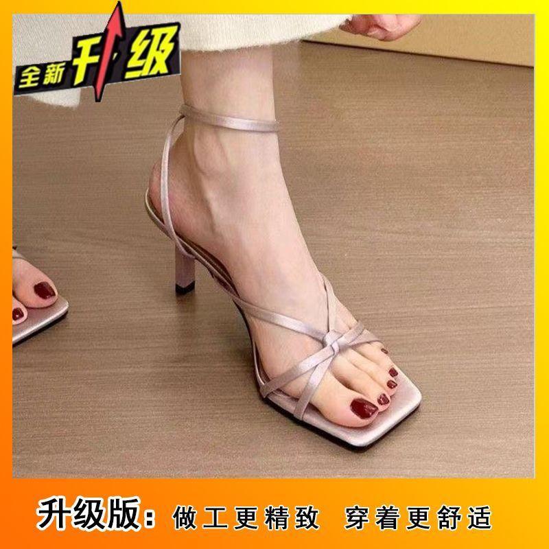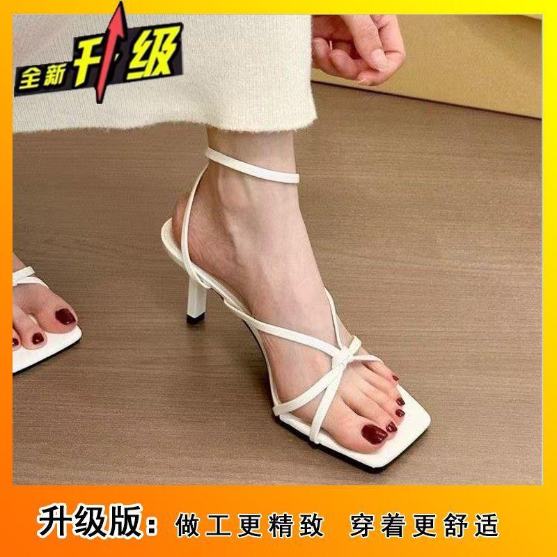 Женские крутые шлепанцы на высоком каблуке с квадратным носком, тонкими ремешками и открытым носком, новая летняя обувь 2025 года в сказочном стиле, подчеркивающая темперамент.