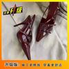 Лакированная кожа тонкий каблук французские высокие каблуки нишевый дизайн 2025 знаменитость слово с сумкой голова сандалии пустые одинарные туфли женские